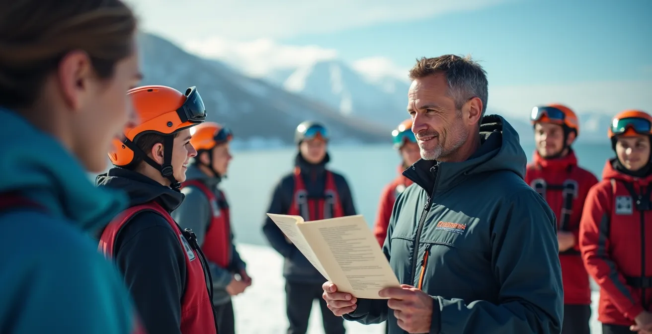 Confier ses enfants ou sa propre sécurité à un moniteur de ski, de surf ou de plongée est un acte de confiance majeur. L’instinct premier, tout à fait légitime, est de s’assurer que l’encadrant possède les qualifications requises. On pense alors immédiatement à la fameuse carte professionnelle d’éducateur sportif ou au diplôme d’État fièrement affiché dans le local de l’école. C’est un point de départ indispensable, le socle administratif sans lequel aucune activité rémunérée ne peut légalement avoir lieu en France. Cependant, se limiter à cette vérification formelle serait une erreur, car elle ne dit que très peu de la compétence réelle de l’individu face aux imprévus du terrain.